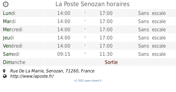 It is also possible to : Modifier ces HEURES D'OUVERTURE of Branche La Poste Dans Senozan, Rue De La Mairie,